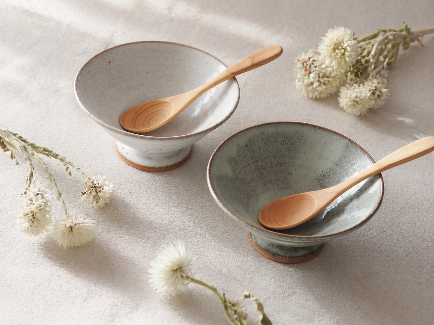 高台小鉢ペアセット|マットホワイト&水のゆらぎ|食卓に穏やかな立体感を|副菜・デザート(和・洋どちらも)